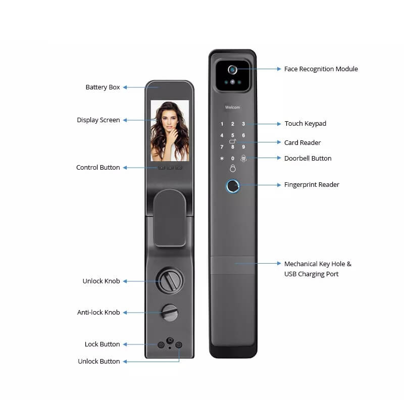 Unlock way: APP+Face+Fingerprint+Passcode+Card+Key