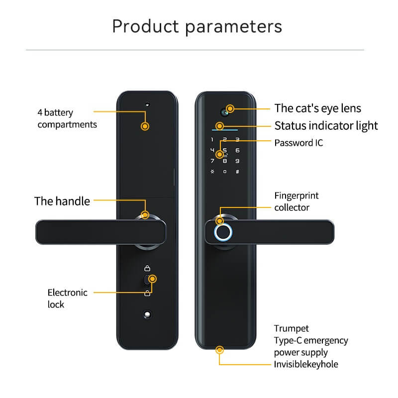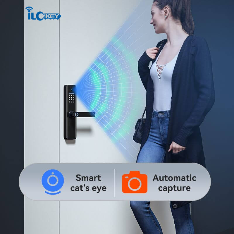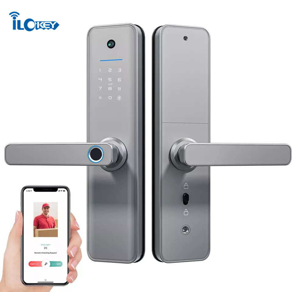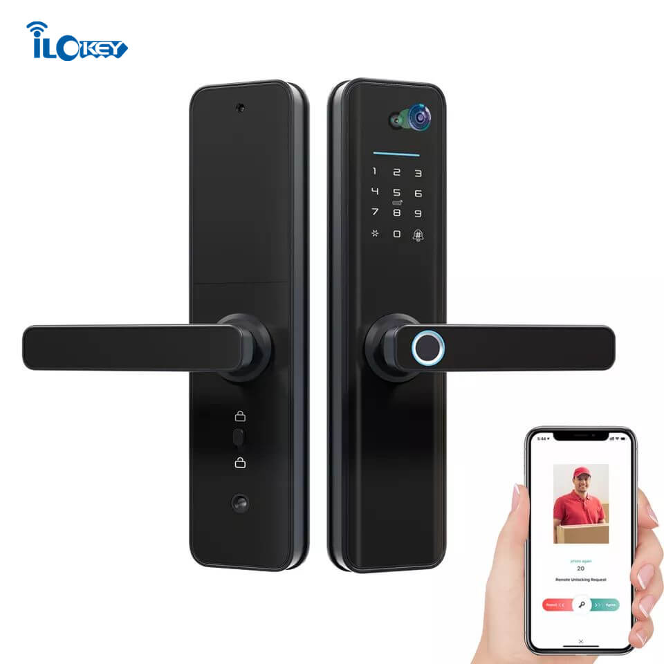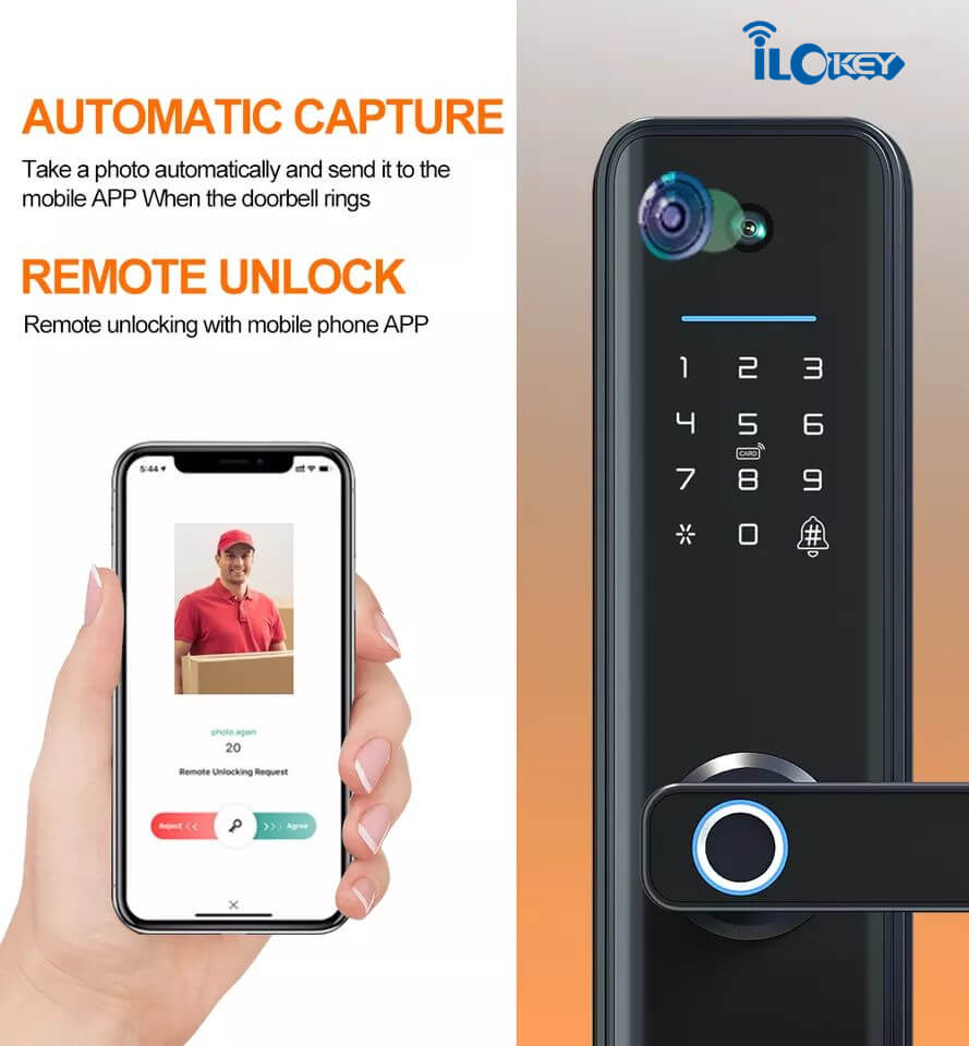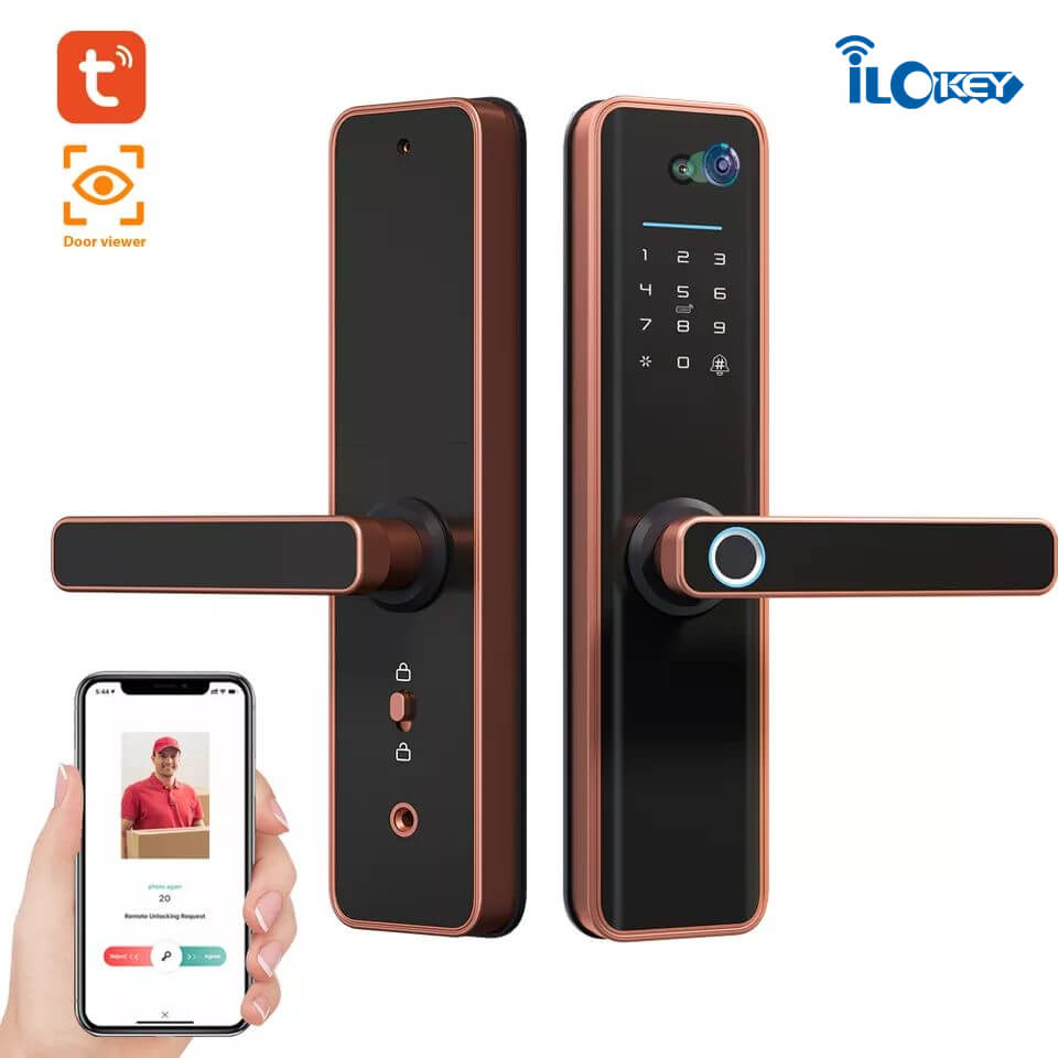 The Tuya WiFi camera lock supports Mobile app view & unlocking via fingerprint, password, ic card, and key. If someone rings the doorbell, you can use your phone to monitor the visitor and decide whether to open the door.