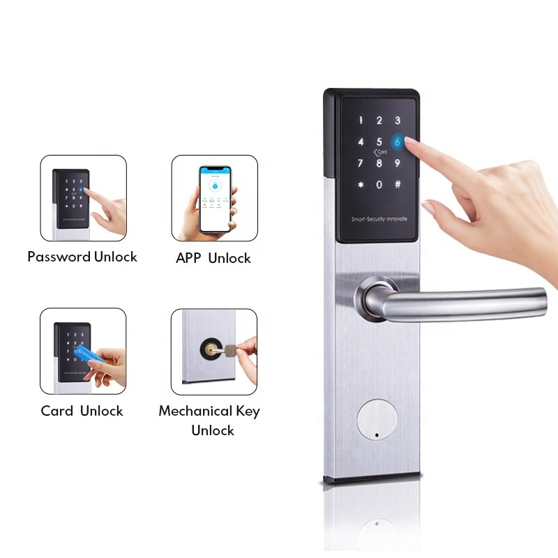 Unlock method: BLE App, M1 Card, Passcode, Wristband, or key